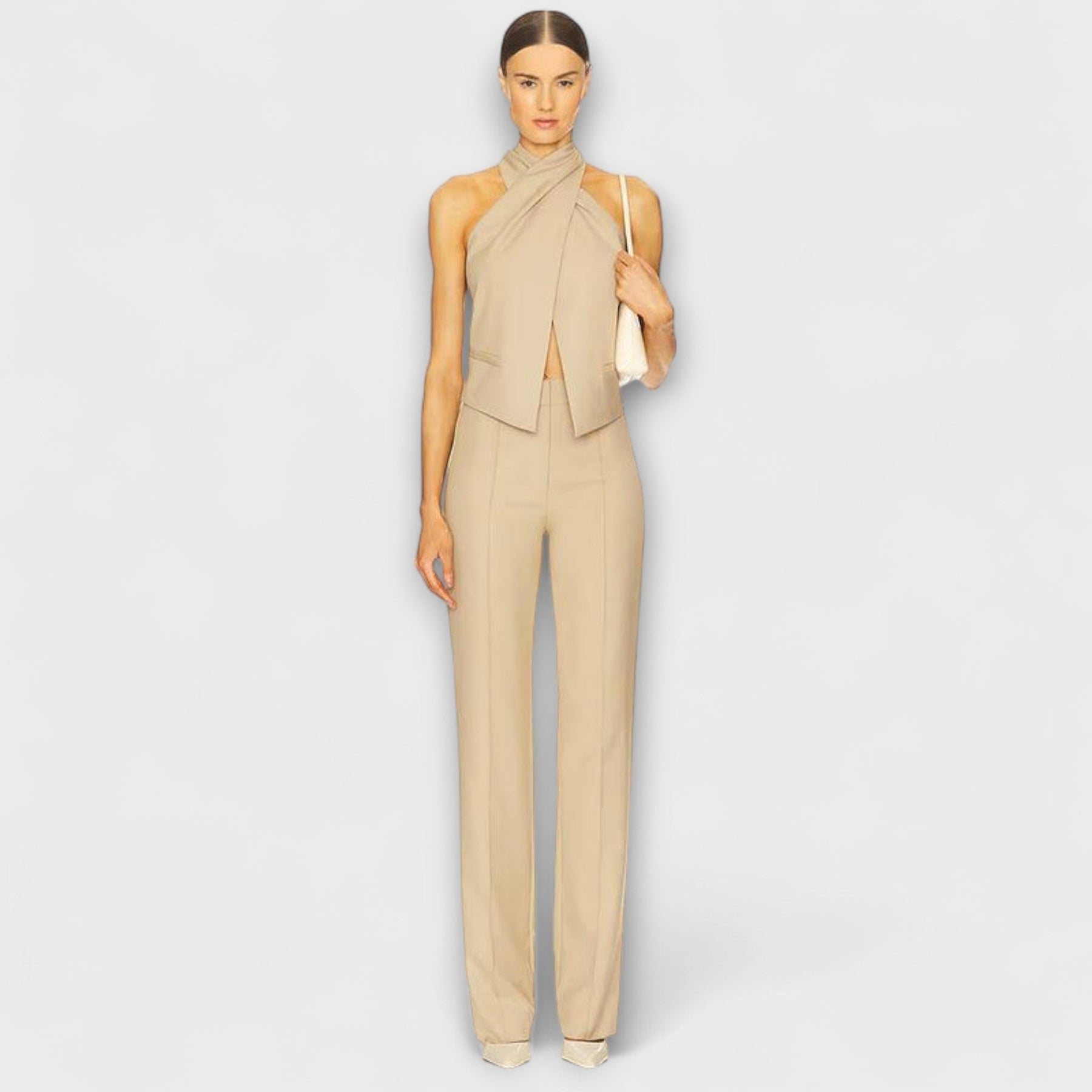Objevte dokonalou kombinaci stylu a sofistikovanosti s naším topem s křížovým zavazováním. Tento elegantní a moderní kousek je vyroben z lehkého tkaného materiálu, který poskytuje pohodlí, aniž by obětoval eleganci.