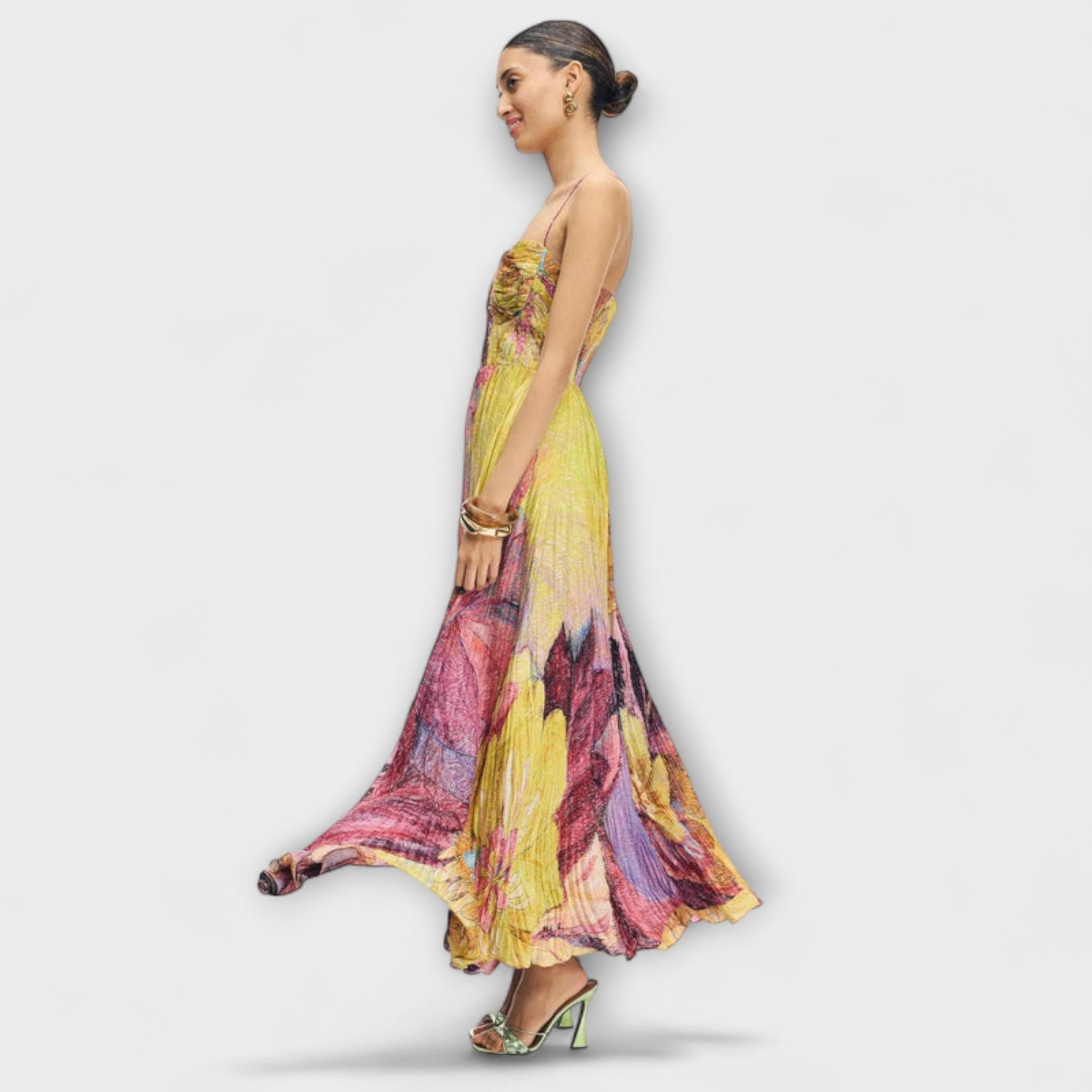 Vstupte do elegance s našimi úchvatnými maxi šaty Kiara v multikolorovém Ikat potisku. Tyto okouzlující šaty mají živý, multikolorový Ikat květinový potisk, který přitahuje pozornost na každé akci.