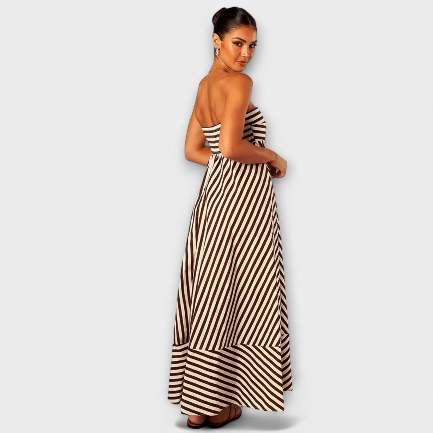 Přijměte eleganci a pohyb s maxi šaty Nocturnal Charm s volány. Navrženy pro pohodlí a styl, detail s volány na zádech zvýrazňuje váš vzhled, zatímco boční neviditelný zip zajišťuje bezpečné nošení.