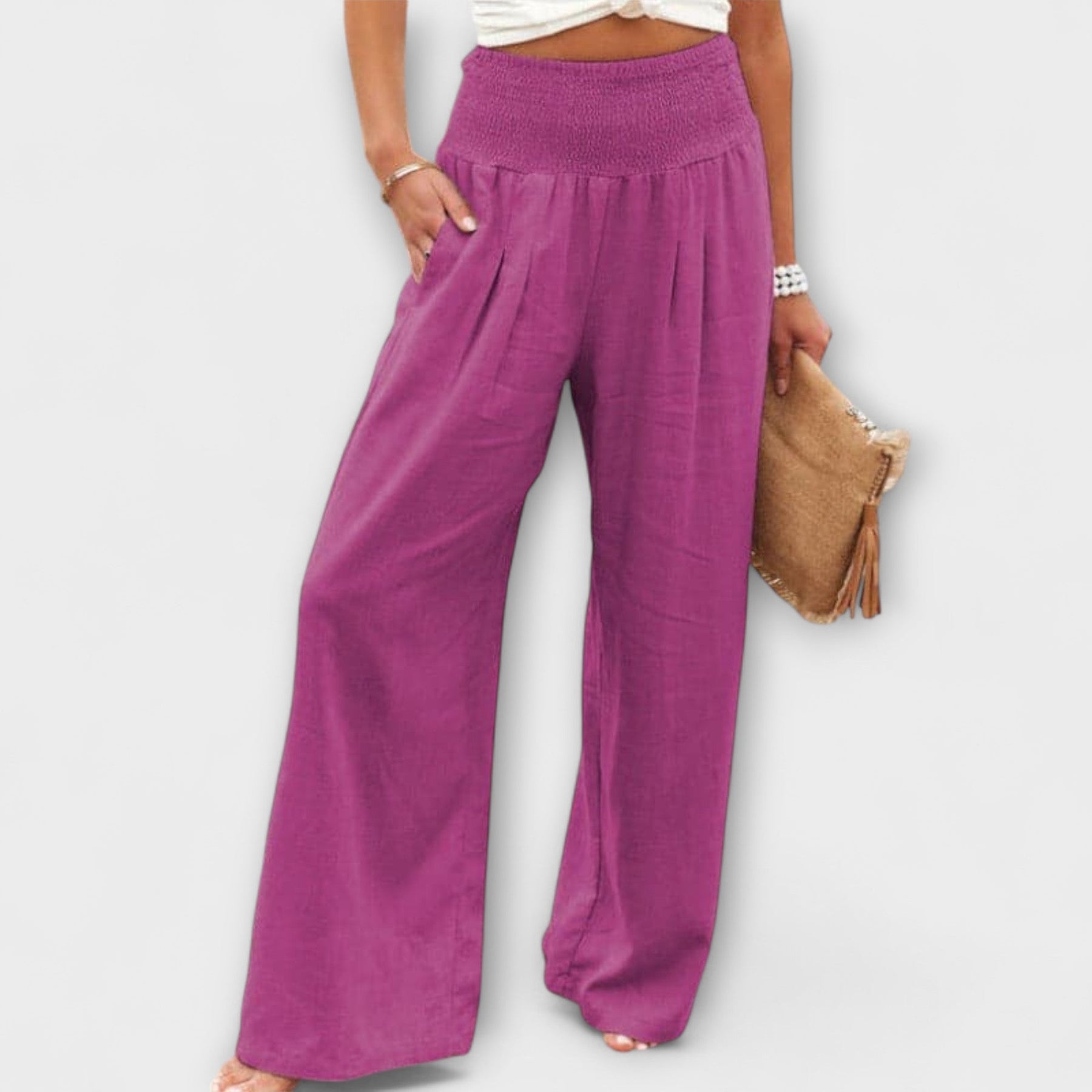Kalhoty Thearya kombinují prostorný, ležérní design s maximálním komfortem a stylovým vzhledem. Středně vysoký pas zajišťuje pohodlné nošení, zatímco různorodé barevné možnosti z nich dělají ideální volbu pro uvolněné dny nebo zvláštní příležitosti.